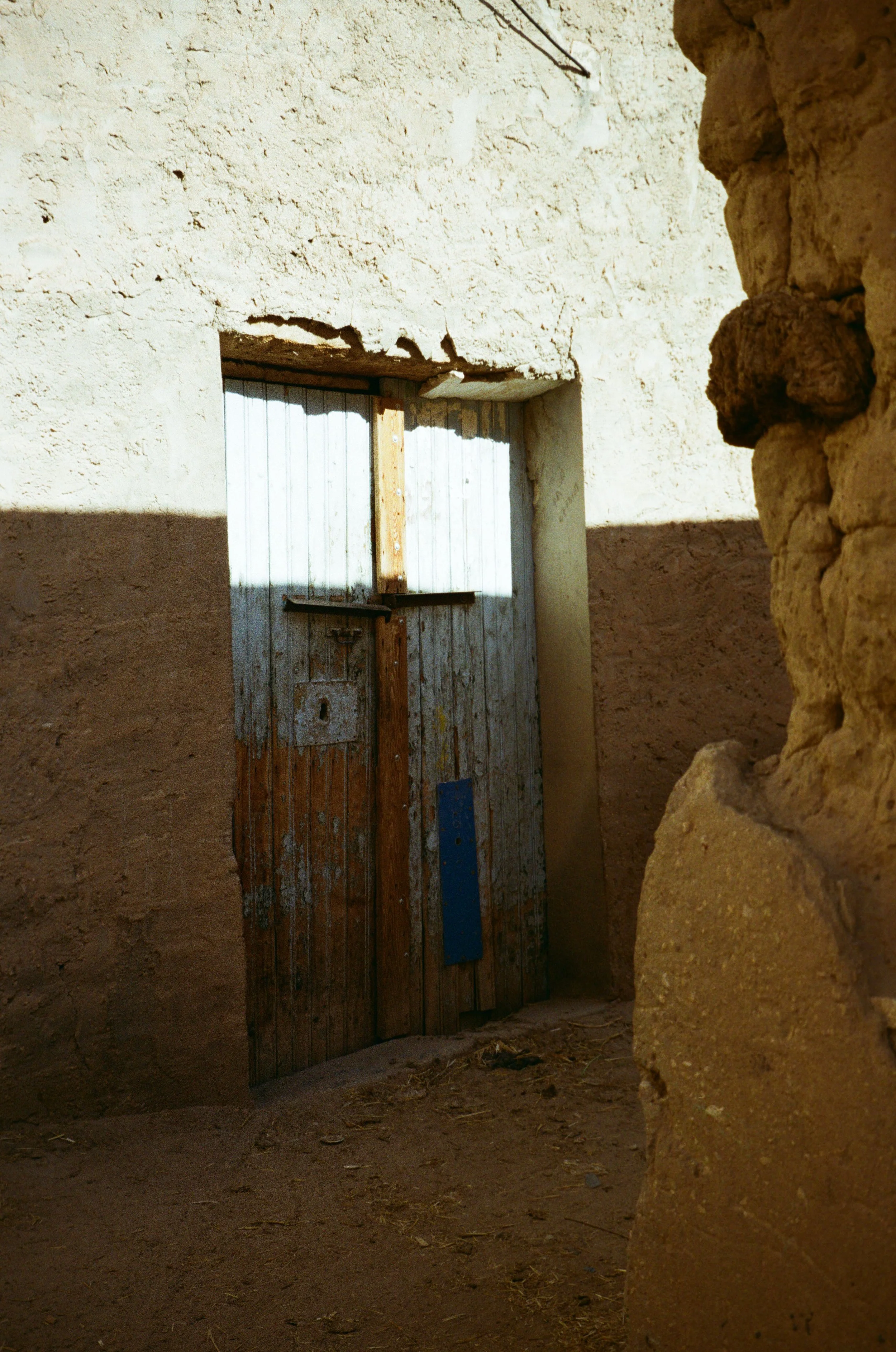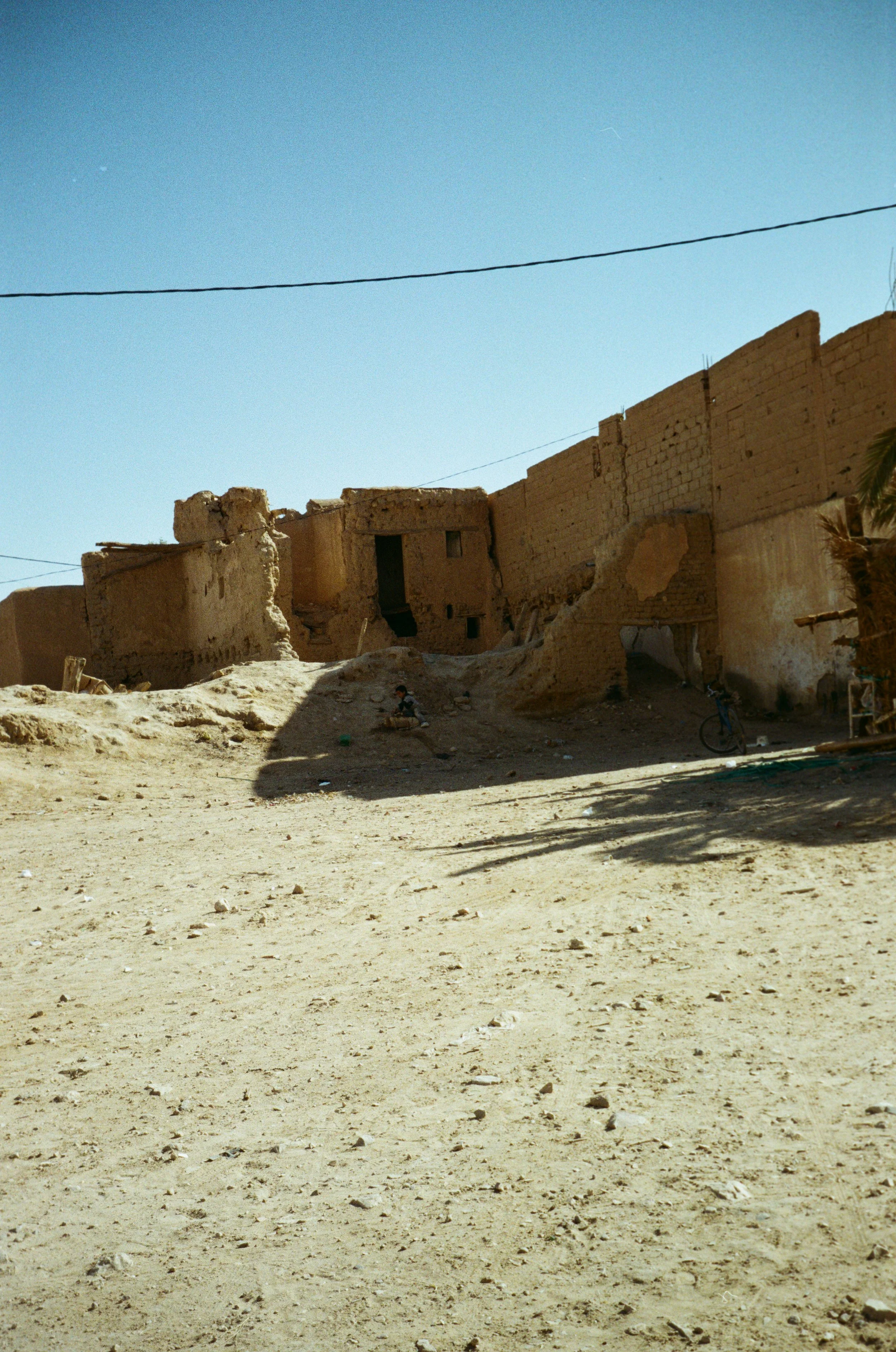 Dans le plus vieux ksar du village, les habitations tombent en ruine, les dédales sont vides, seuls quelques aboiements raisonnent au loin mêlés au bruit d’une mobylette. Cette partie du village ressemble à une carte postale oubliée, délavée dont les coins ont été écorchés par le temps.